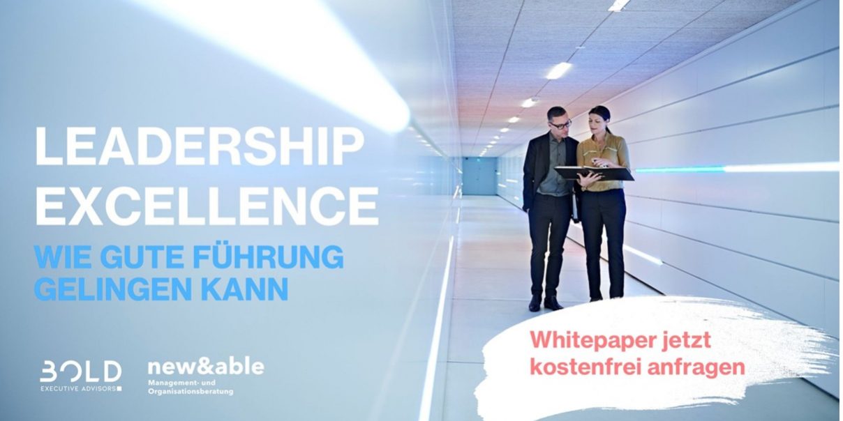 Diesen Fragen sind new&able und BOLD Executive Advisors in einer qualitativen Studie nachgegangen. In zahlreichen Interviews mit Führungskräften aus unterschiedlichsten Branchen haben sie herausgearbeitet, wie moderne Leadership-Exzellenz verstanden und in der Praxis gelebt wird.